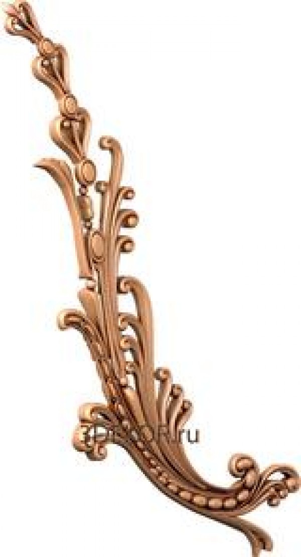 Изысканный декор в виде тонких длинных стеблей и травинок, собранных в S-образный букет. Очень тонкая работа по дереву. Накладка может использоваться в качестве звена бордюрного орнамента или самостоятельно, как нежный акцент в интерьере.