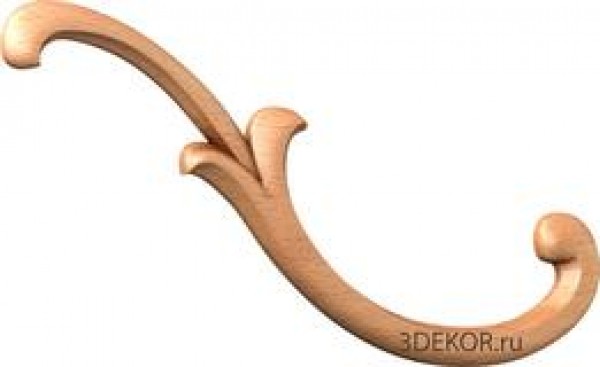 S-образный завиток, состоящий из двух сочленений, одно из которых чуть длиннее другого. Утонченная резная деталь подойдет для декорирования дверей, лестниц и мебели. Поверхность завитка объемная и гладкая.