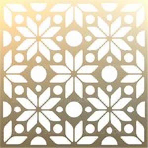 Декоративная панель из дерева с прорезным цветочным орнаментом. Композиция построена на принципе симметрии. Основными элементами декора являются два вида цветов, которые поочередно вписаны в геометрические фигуры - квадраты и окружности.